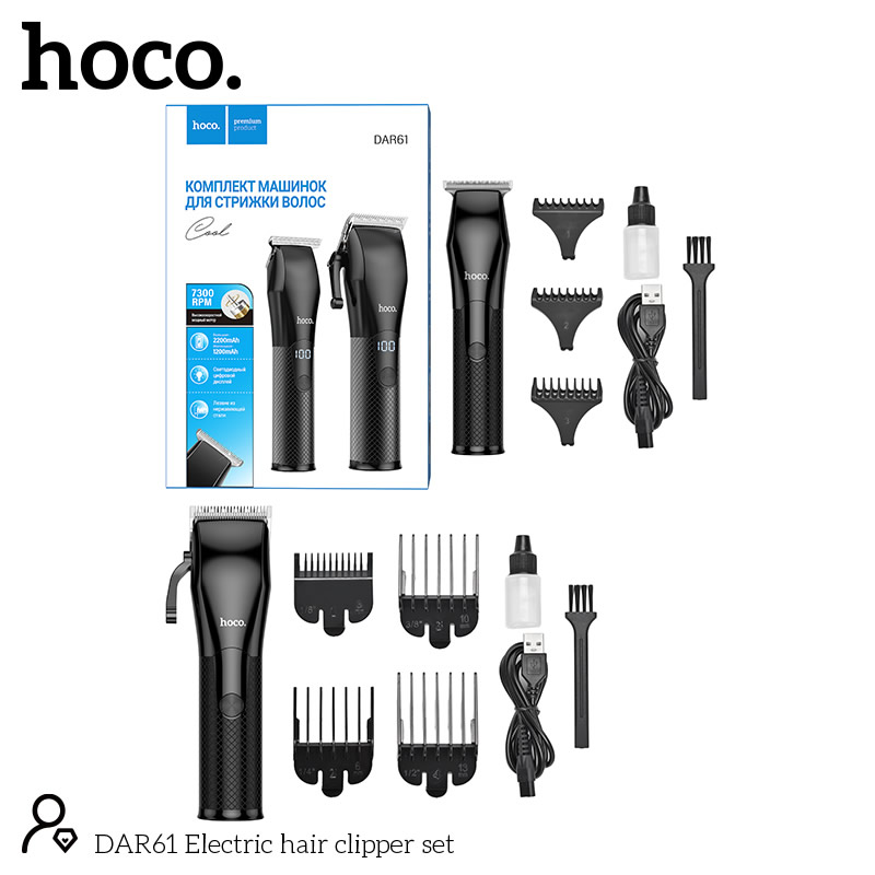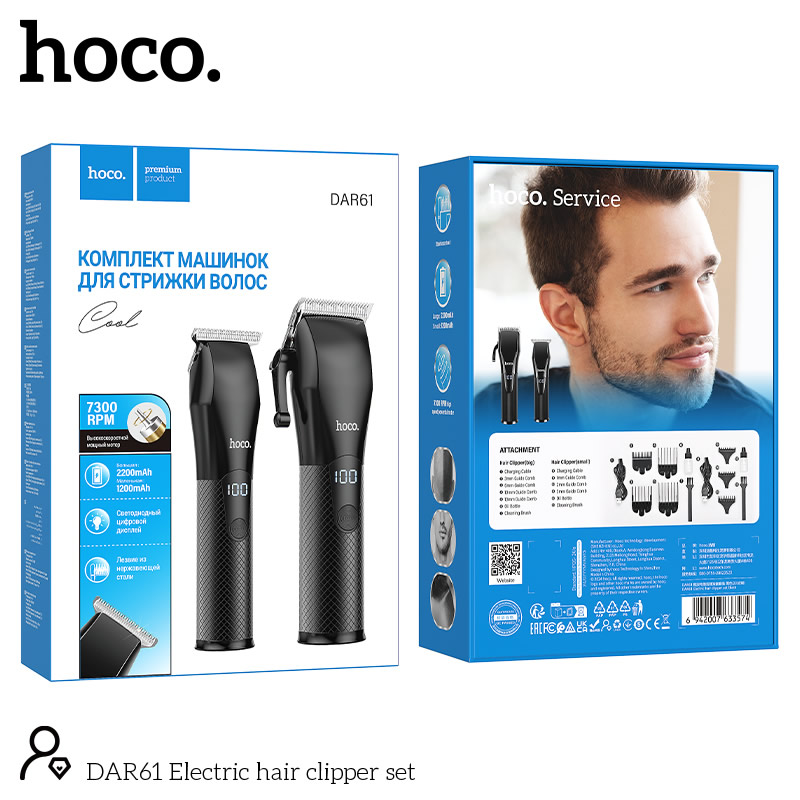 6. Аксессуары (большой): зарядный кабель, щетка, флакон с маслом, 4 расчески для позиционирования, 3мм,6мм,10мм,13мм