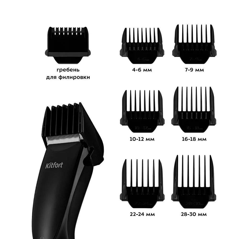 С помощью 6 съёмных гребней вы можете оставить волосы определённой длины и установить режим стрижки волос от 4 до 30 мм. Также в комплекте с машинкой идёт гребень для филировки (прореживания) волос.