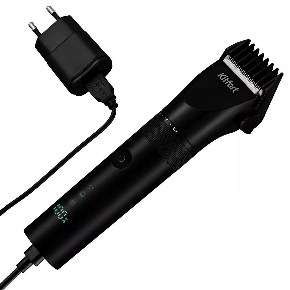 На дисплее машинки отображаются: скорость работы устройства, индикация и текущий уровень заряда в %, а также значок блокировки. Всего у 3 скорости работы, переключение между которыми осуществляется нажатием на кнопку включения.