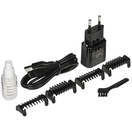 4 насадки (1/3/5/6 мм), кабель USB, масло, чехол, щетка для чистки