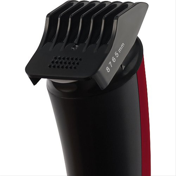 Комплектация сумочка для хранения и переноски, 4 насадки (3-6-9-12 мм), 1 регулируемая насадка (3-7 мм), бритва для тела, гребень для тела, детальный триммер, узкий триммер, триммер для носа и ушей, сетевой адаптер, широкий триммер, документация, щетка, расческа, масло