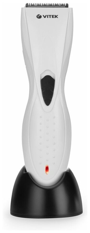 Если Вам нужна простая, надежная и эффективная рабочая лошадка, то машинка для стрижки Vitek VT-1351 станет отличным приобретением. Она смотрится одновременно строго и изящно. Более того, в набор для стрижки Vitek 1351 входит телескопическая насадка. С её помощью можно создавать самые разные стрижки, которые удовлетворят любого человека. Меняя установку, вы легко сможете изменить длину стрижки - для этого не нужно иметь практически никакого опыта в деле стрижки. Защитная крышка делает работу ещё более безопасной и простой. В состав набора входит смазочное масло для машинки, расческа и щёточка.
