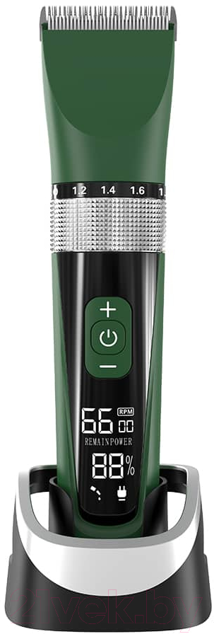Специальный ролик позволяет ювелирно настроить нужную вам длину в диапазоне от 0.8 мм до 1.8 мм. А 4 дополнительных направляющих гребня еще больше расширят вариативность настроек. При использовании выбирайте одну из пяти подходящих скоростей от 5000 об/мин до 7000 об/мин. Двойные лезвия выполнены из нержавеющей стали и керамики. Долговечные материалы остаются острыми длительное время, что обеспечивает отличный результат при каждом использовании. Для ухода за машинкой в комплекте также есть щеточка для очистки. Полностью заряженная литий-ионная батарея гарантирует работу до 120 минут без подключения к сети. Машинка легко и быстро заряжается через USB-кабель, для удобства в комплекте есть зарядная база-подставка. Встроенный LED-дисплей всегда покажет процент зарядки и необходимость подключения к сети. Степень влагозащиты IPX7 делает корпус машинки невосприимчивым к воде и дает возможность промывать лезвия под струей для лучшей очистки.