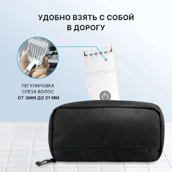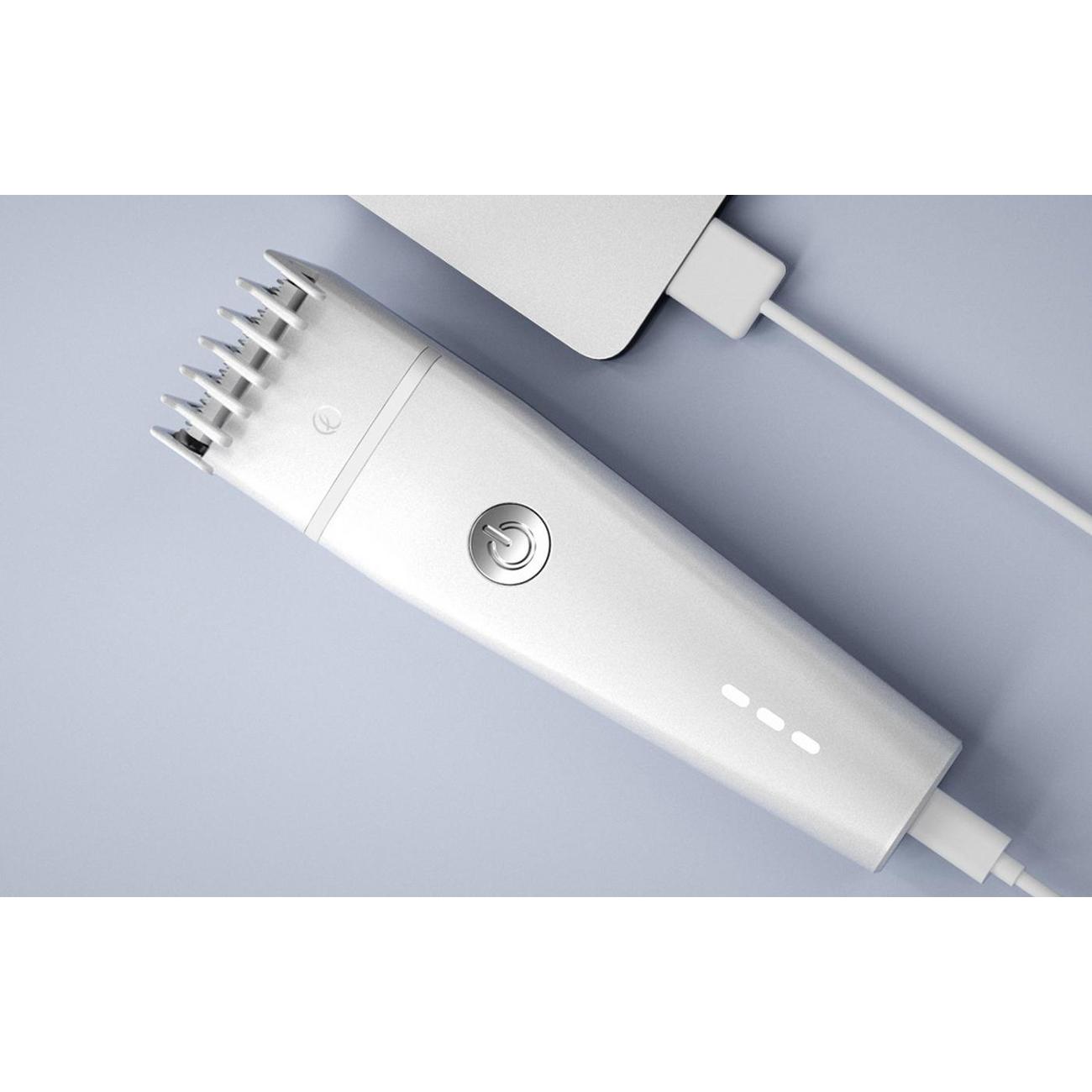 В машинке для стрижки волос лезвия из керамики и имеют скругленные края. Благодаря этому лезвия практически не нагреваются в процессе работы, наиболее безопасной формы. Машинка проста в управлении и достаточно тихая, подойдет для стрижки взрослых и детей. Имеет выдвижную съёмную насадку, которая позволяет регулировать длину среза от 0,7 до 21 мм. В моделе два режима работы («стандартный» и «турборежим»), переключиться между ними можно зажав кнопку питания. Батарея емкостью 600 мАч при полном заряде обеспечивает до 120 минут автономной работы. есть светодиодная индикация заряда батареи. Для пополнения энергии предусмотрен универсальный порт USB Type-C.