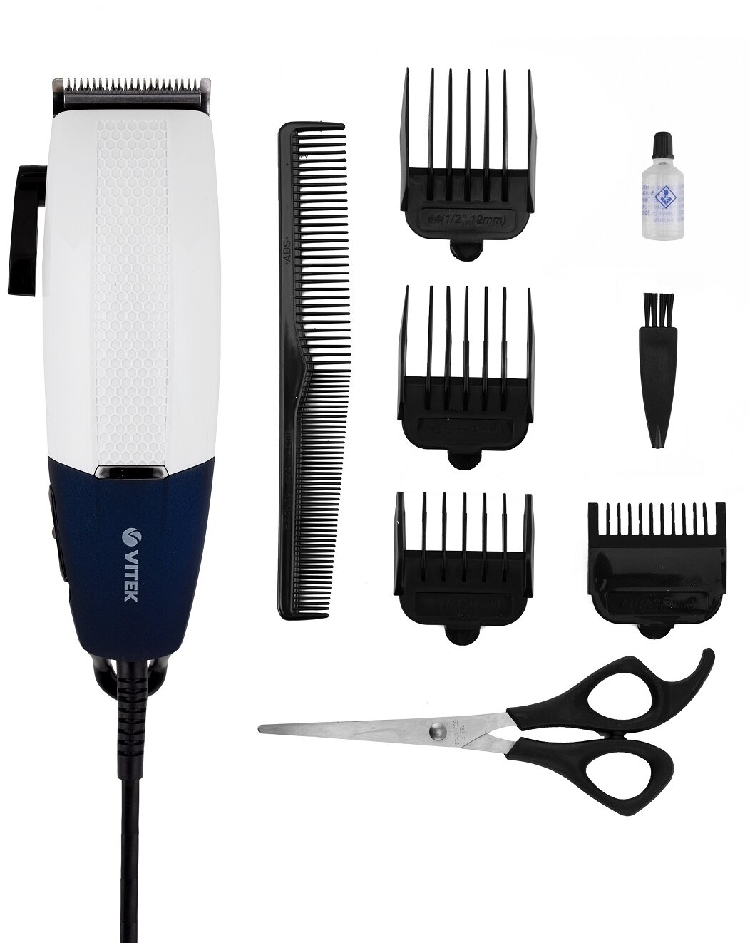 адаптер, смазочное масло, расческа, ножницы, щеточка