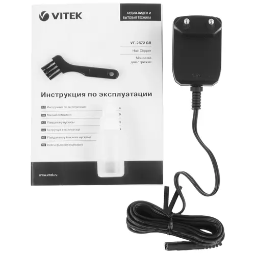 В Vitek VT-2572 GR предоставляется широкий диапазон регулировки длины стрижки. Минимальный параметр – 1 мм, максимальный – 30. Количество возможных установок – 11. Настройка длины осуществляется путем смены двух насадок и параметров непосредственно на машинке.