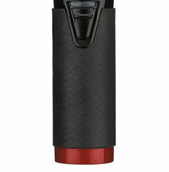 Дизайн триммера BaByliss PRO FX7870RBPE BLACK&RED выполнен в стильном металлическом корпусе. Ручка оборудована прорезиненными вставками с специальными насечками для надежного сцепления с рукой. Кроме того, модель хорошо сбалансирована, что обеспечивает комфортную работу без лишних нагрузок на кисть. На корпусе также расположены кнопка включения-выключения и светодиодный индикатор состояния аккумулятора. На задней части триммера имеется металлическая петелька для удобного подвешивания.