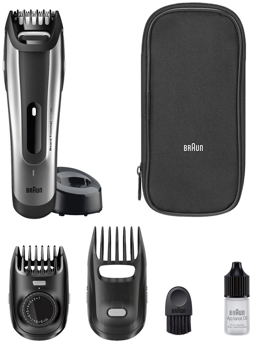 Комплектация | сумочка для хранения и переноски, подставка для зарядки, зарядное устройство, 2 насадки с установкой длины (1-10 мм и 10-20 мм), документация, щетка, масло |