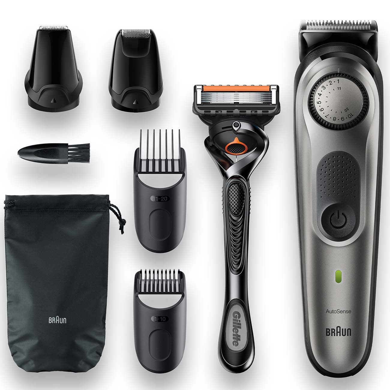 В триммере установлены лезвия из нержавеющей стали шириной 3,5 мм. После использования их можно промывать под струей воды. В комплекте есть четыре насадки, в том числе два гребня для регулировки длины стрижки: 1-10 мм и 11-20 мм.