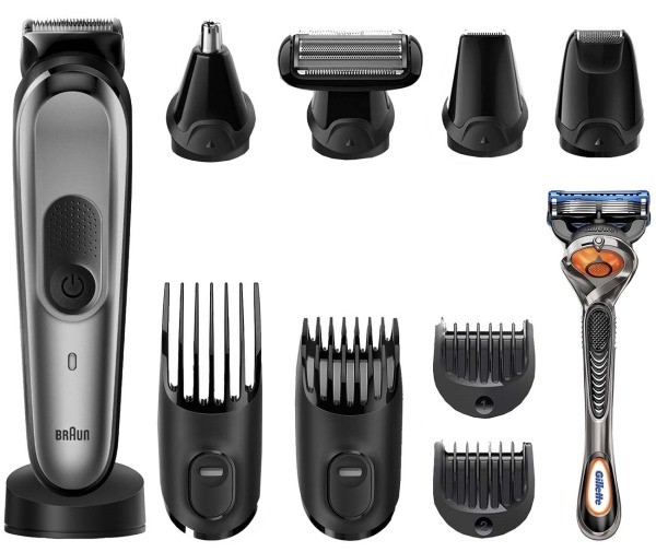 | Основное назначение | многофункциональная машинка для стрижки |  |  | | Комплектация | | Насадки | нож для стрижки доп. нож для стрижки триммер для ушей и носа сеточная бритва бритва для тела универсальный гребень / 2 шт /