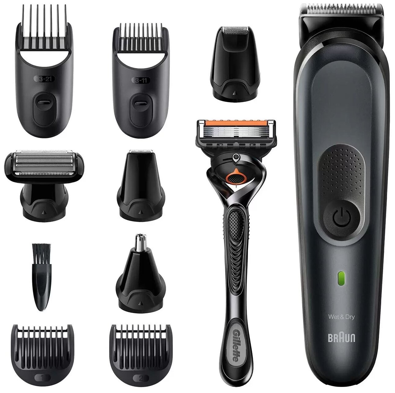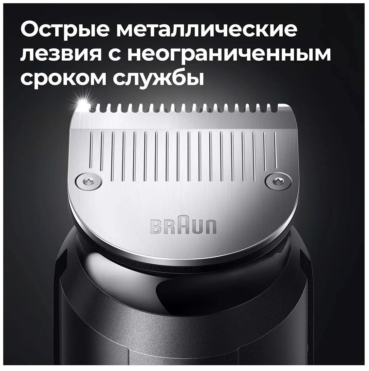 Лезвия триммера сделаны из нержавеющей стали, их ширина — 3,5 мм. После завершения работы можно промыть их под струей воды. В комплект поставки входят восемь насадок для регулировки длины стрижки.