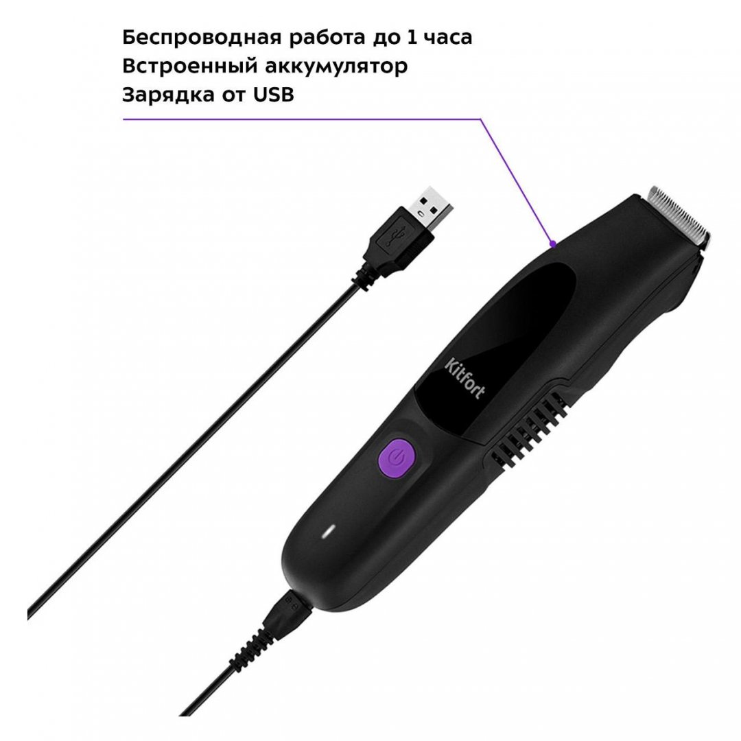 Триммер для бороды и усов Kitfort КТ-3143, с вакуумной системой можно использовать автономно в течение 60 мин. Для полного заряда батареи необходимо около 2 ч. Встроенный индикатор оповещает об активации и заряде. После каждого применения производитель рекомендует очищать ножи от волос с помощью щеточки. Для ухода за лезвиями в комплекте предусмотрено масло. Благодаря эргономичной форме устройство комфортно держать в руках.