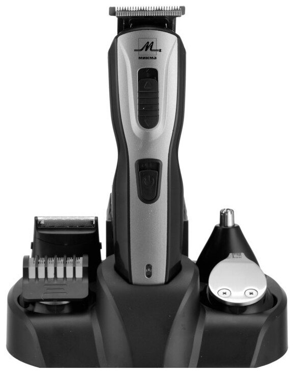 Комплектация 1 регулируемая насадка, детальный триммер, узкий триммер, триммер для носа и ушей, насадка-бритва, зарядное устройство, широкий триммер, документация, щетка, 4 насадки (3-6-9-12 мм), масло, подставка