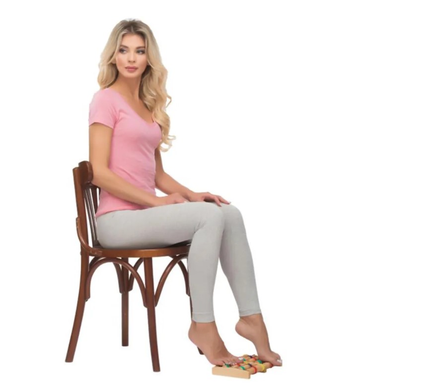 - Для массажа стоп сядьте на стул, положите босые ноги на ролики, передвигайте ноги вперед-назад, массаж производится за счет вращения массажных роликов.