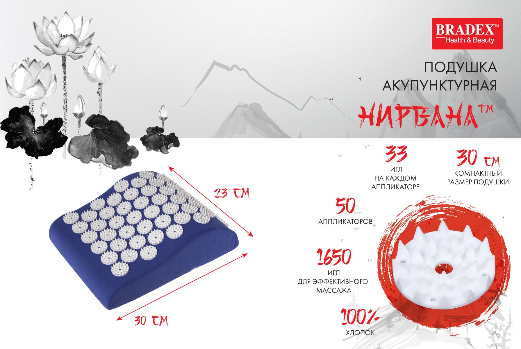 Акупунктурная подушка Bradex KZ 0492 разгружает шейный отдел позвоночника, обеспечивая нормальную работу позвоночных артерий и поступление кровотока в мозг. Здоровые сосуды головного мозга - залог хорошего самочувствия и правильного функционирования всех внутренних органов в организме человека. Ежедневное 15-минутное использование подушки позволит снять перенапряжение в конце дня и ощутить прилив новых сил. Рекомендуется при сильной утомляемости, нарушениях сна, головных болях, а также в качестве профилактики разных заболеваний шейного отдела позвоночника.