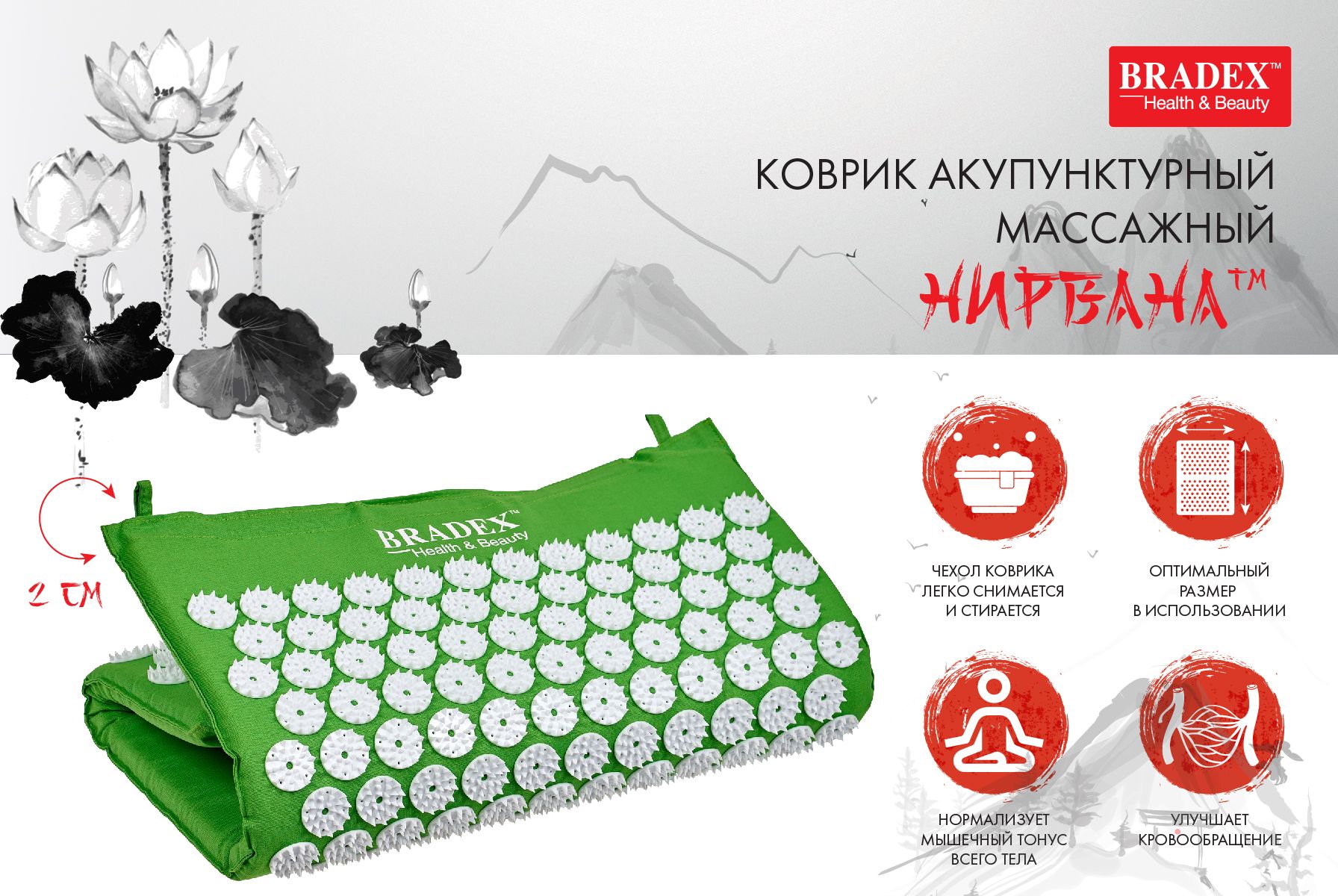 Акупунктурный коврик Bradex KZ 0667 размером 65*40 см отличается от других товаров серии оптимальным размером, его можно использовать дома, взять с собой на природу или на занятия йогой. Отличное средство для релаксации и медитации. Ежедневный 15-30 минутный массаж тела на коврике рекомендуется при нарушении сна, головных болях, переутомлении, а также сразу после физических упражнений и нагрузок.