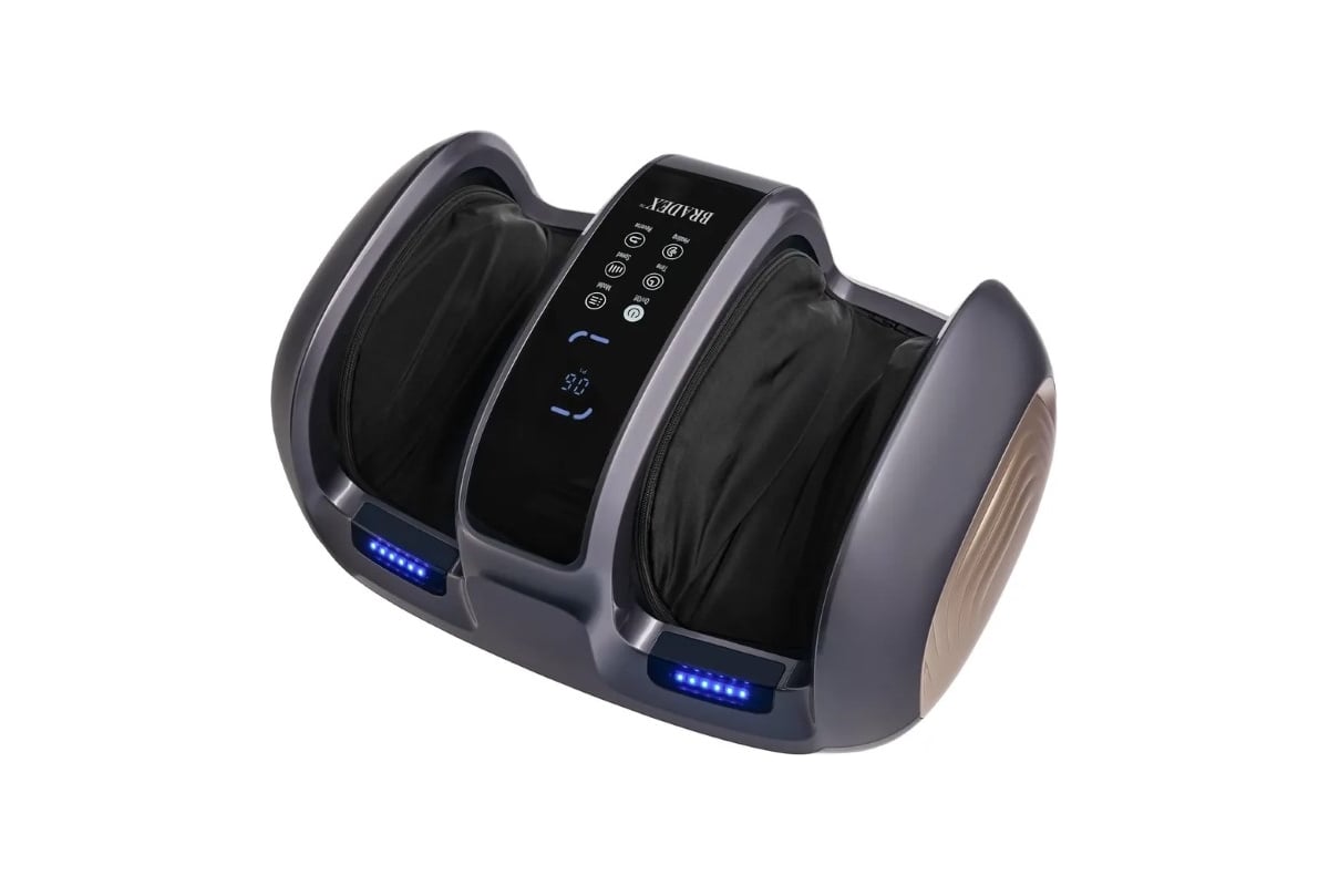 -Компрессионный массаж боковых поверхностей стопы валиковым механизмом 3 автоматические программы 3 скорости и 2 направления вращения