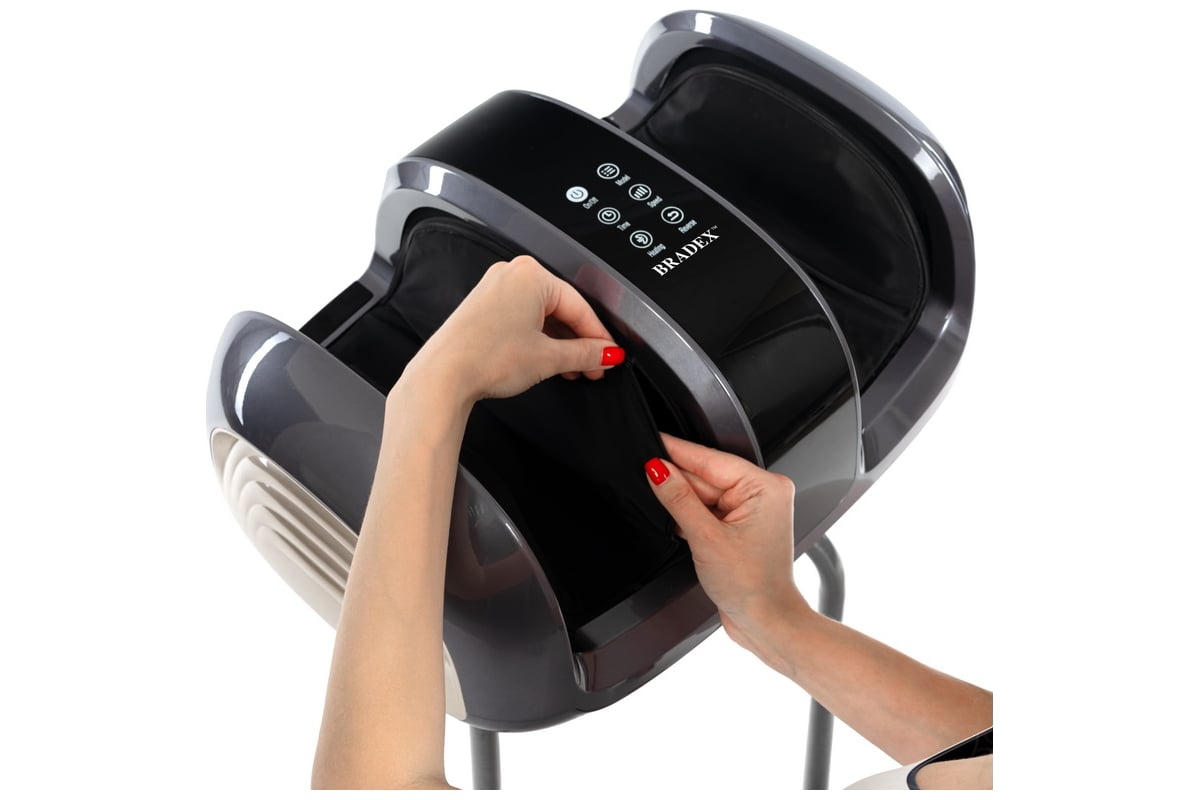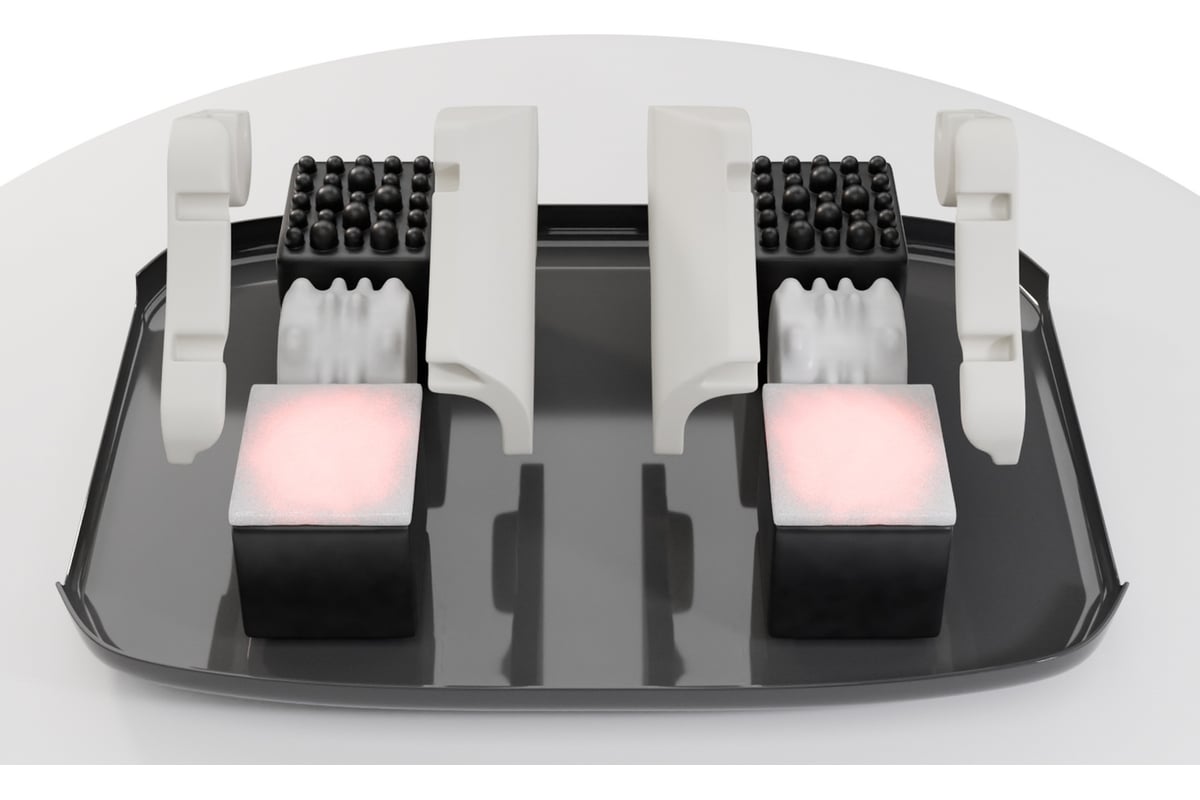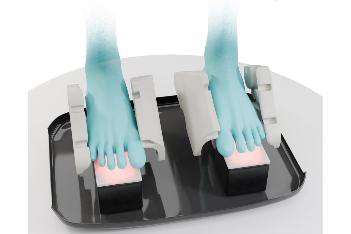 Массажные механизмы устроены таким образом, что при массаже происходит полный охват стопы с 3-х сторон: боковые поверхности, свод стопы, пальцы и подушечки пальцев, а также пятка.