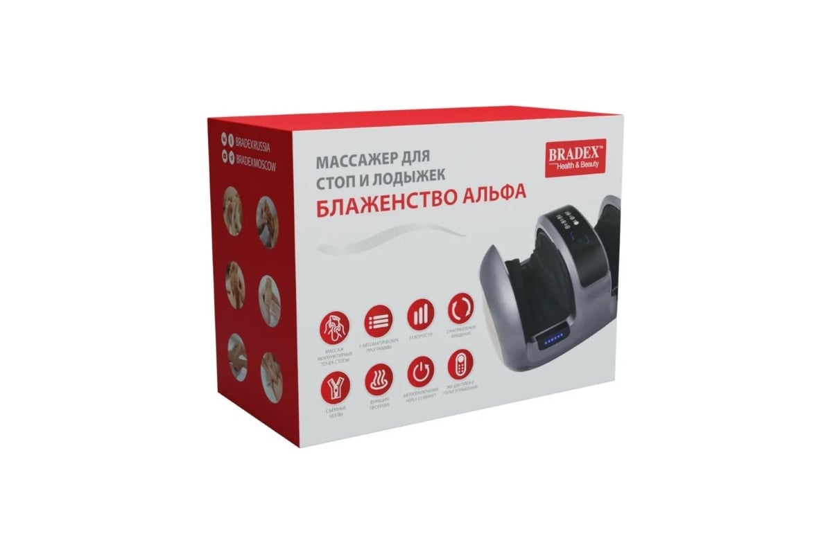 «БЛАЖЕНСТВО АЛЬФА» - стильный современный домашний массажер, сочетающий в себе два типа массажа: традиционный точечный роликовый массаж стоп и интенсивный компрессионный массаж боковых поверхностей стоп валиковым механизмом.