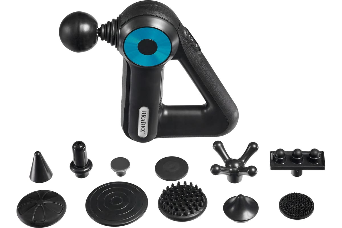 В комплекте предусмотрено 12 сменных насадок для эффективной проработки различных групп мышц на теле, а также для выполнения расслабляющего массажа лица и головы.