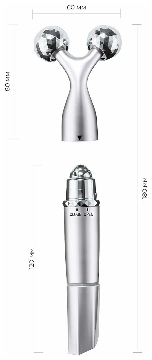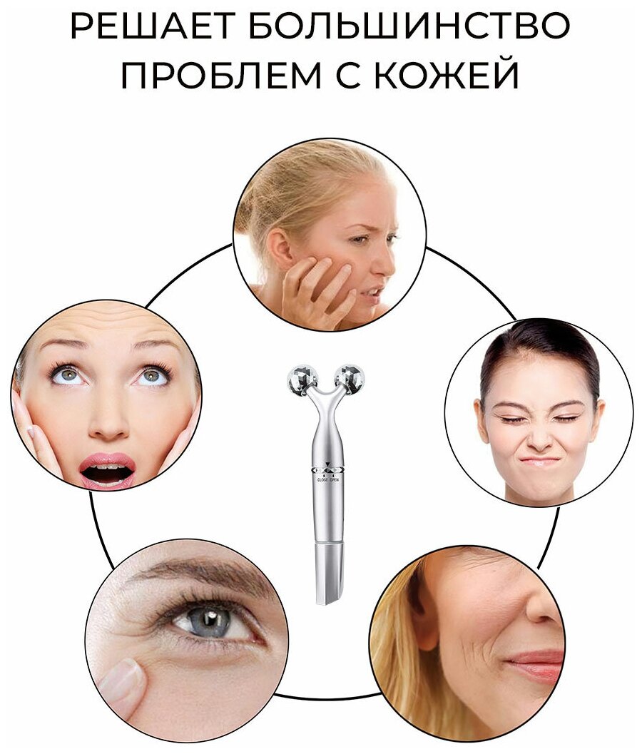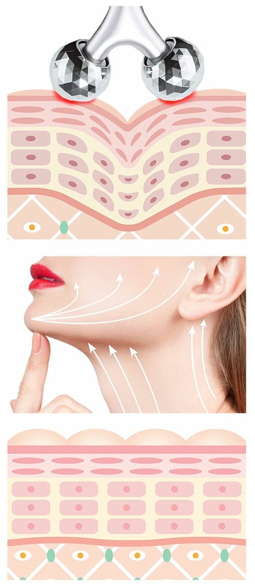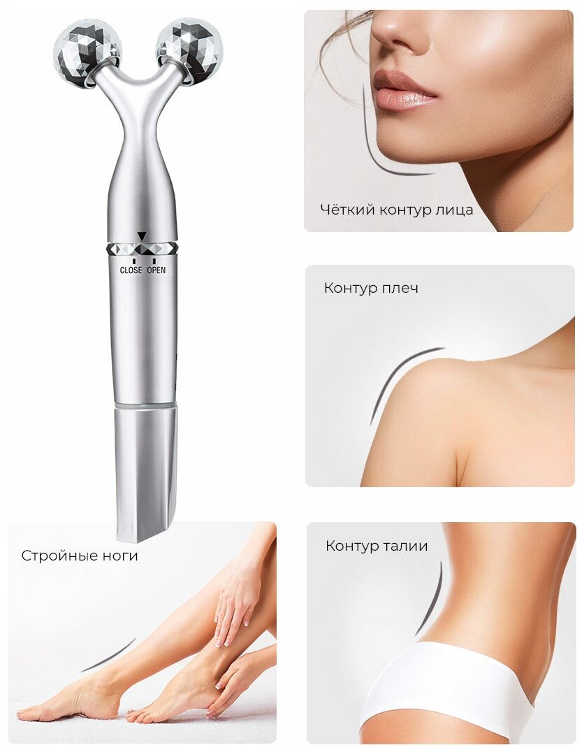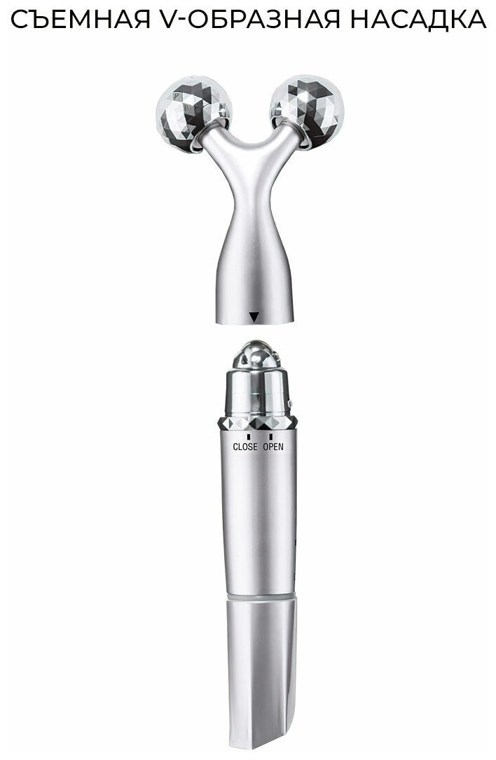 Эффективный и простой в использовании: всего 5 минут в день 3D массажа лица Y-образной насадкой сделают кожу более упругой и эластичной, помогут избавиться от отечности, создать четкий овал лица, снять напряжение и воспрепятствовать появлению морщин. Массаж стальным роликом, в свою очередь, снимет мышечную и суставную боль, расслабит напряженные зоны и улучшит кровообращение. Кроме того, роллер-массажер влагонепроницаемый, его можно использовать в ванной (без погружения в воду).