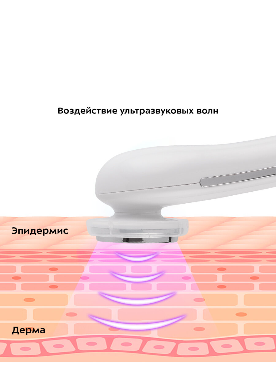 Под воздействием ультразвуковых волн стимулируется синтез коллагена, который отвечает за молодость кожи. Массаж ультразвуком способствует разглаживанию морщин. Ультразвук помогает активным веществам из косметических средств проникать в глубокие слои кожи.