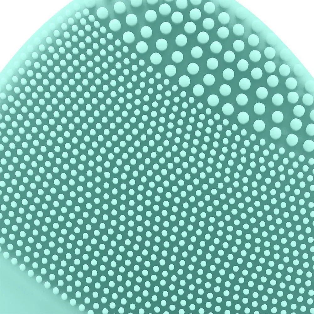 Щетинки вверху рабочей поверхности немного жестче и крупнее, что делает прибор универсальным и позволяет эффективно очистить кожу. Корпус щетки выполнен из силикона. Рабочая поверхность прибора не травмирует кожу, быстро сохнет, легко очищается.