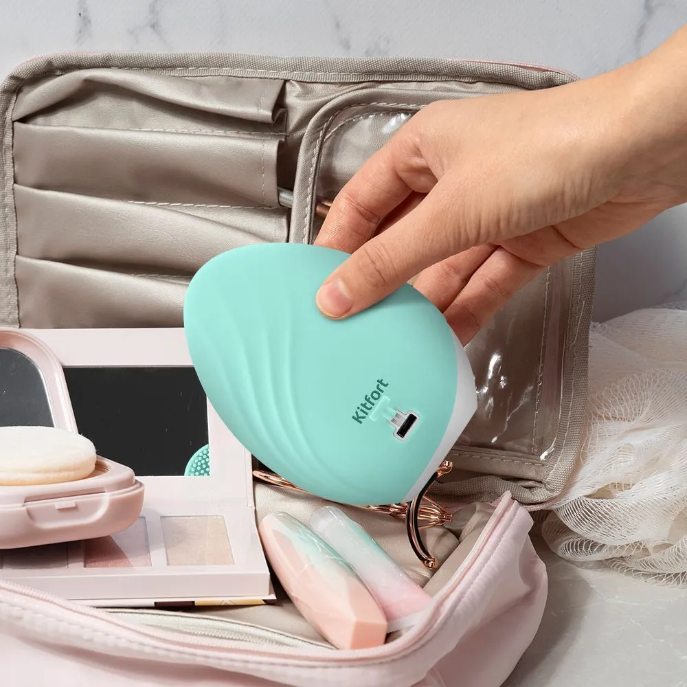 Щёточка предлагает нежное массажное воздействие, способствуя улучшению кровообращения и стимулируя выработку коллагена, что является важным фактором для поддержания упругости. Прибор компактный и его приятно держать в руке.
