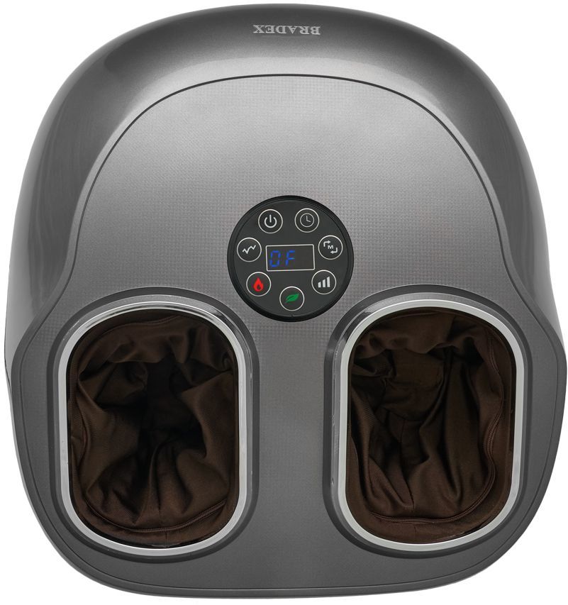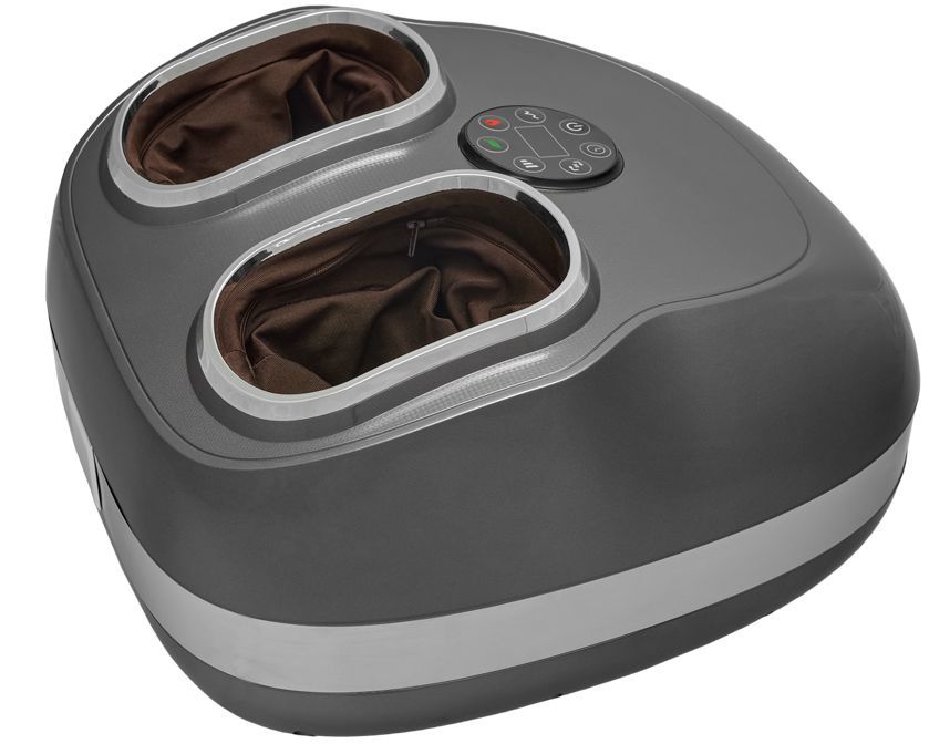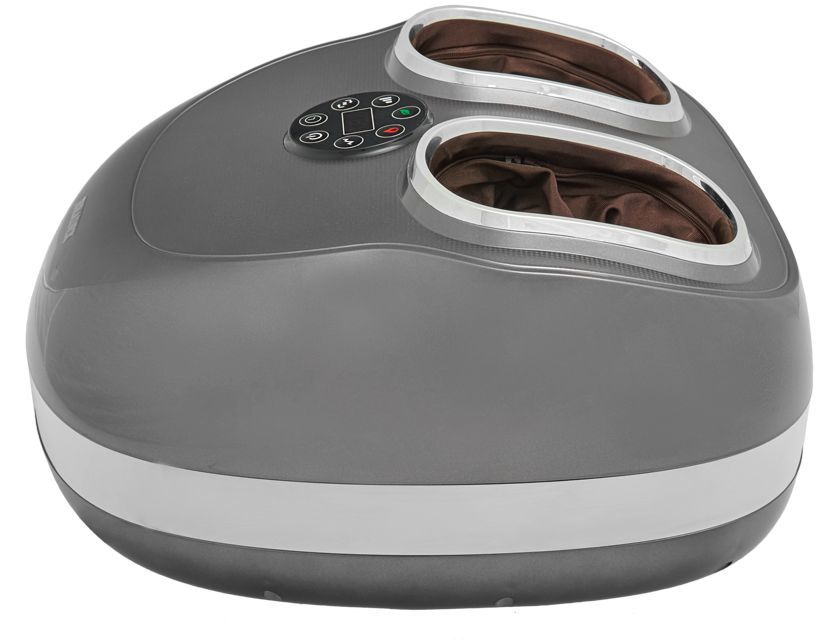 Премиальный массажер для ног с функциями разминающего, роликового, постукивающего массажа, а также компрессии и прогрева, воздействует на рефлекторные зоны стоп и способствует улучшению кровообращения, а также снятию напряжения, мышечной боли в ногах и усталости после физических нагрузок.