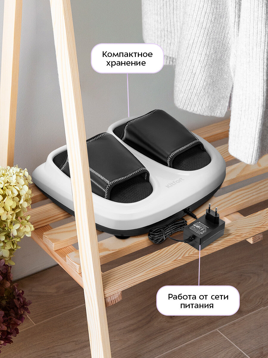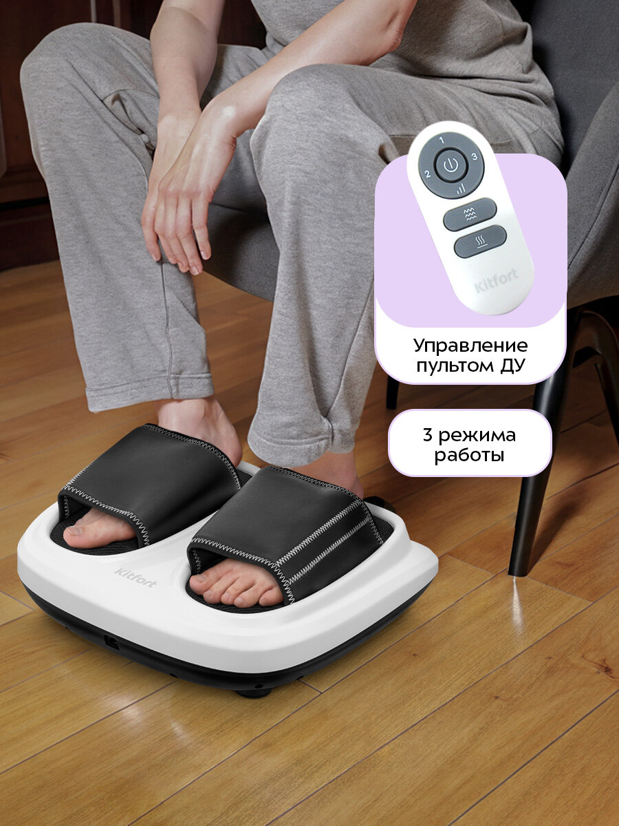 Массажёр для ног КТ-5930 выполнит массаж ваших ног и избавит их от усталости. Прибор имеет 3 режима и их можно использовать по отдельности или комбинируя друг с другом. Управлять устройством можно кнопками на корпусе или пультом ДУ.