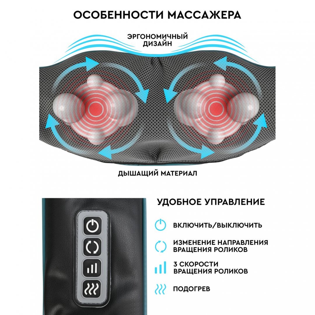 Массажер для шеи Planta MSH-600 представляет собой многофункциональное изделие, предназначенное для эффективной проработки мышц в домашних условиях. С помощью модели можно размять и расслабить мышцы шеи, поясницы, живота, спины и ног. При регулярном использовании модель выводит лишнюю жидкость и снимает отечность. Инфракрасное излучение оказывает комфортное согревающее воздействие, что позволяет устранить спазмы в мышцах, избавиться от напряжения после физической нагрузки и ускорить кровообращение.