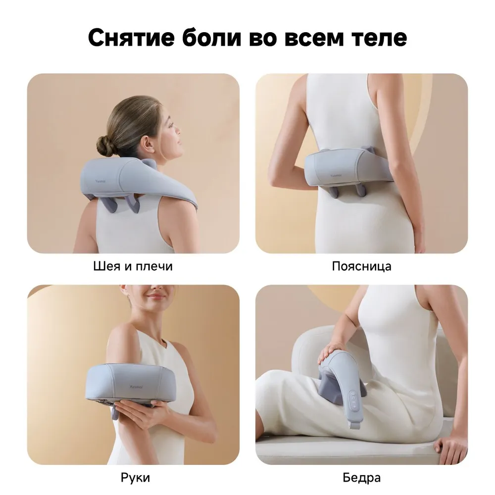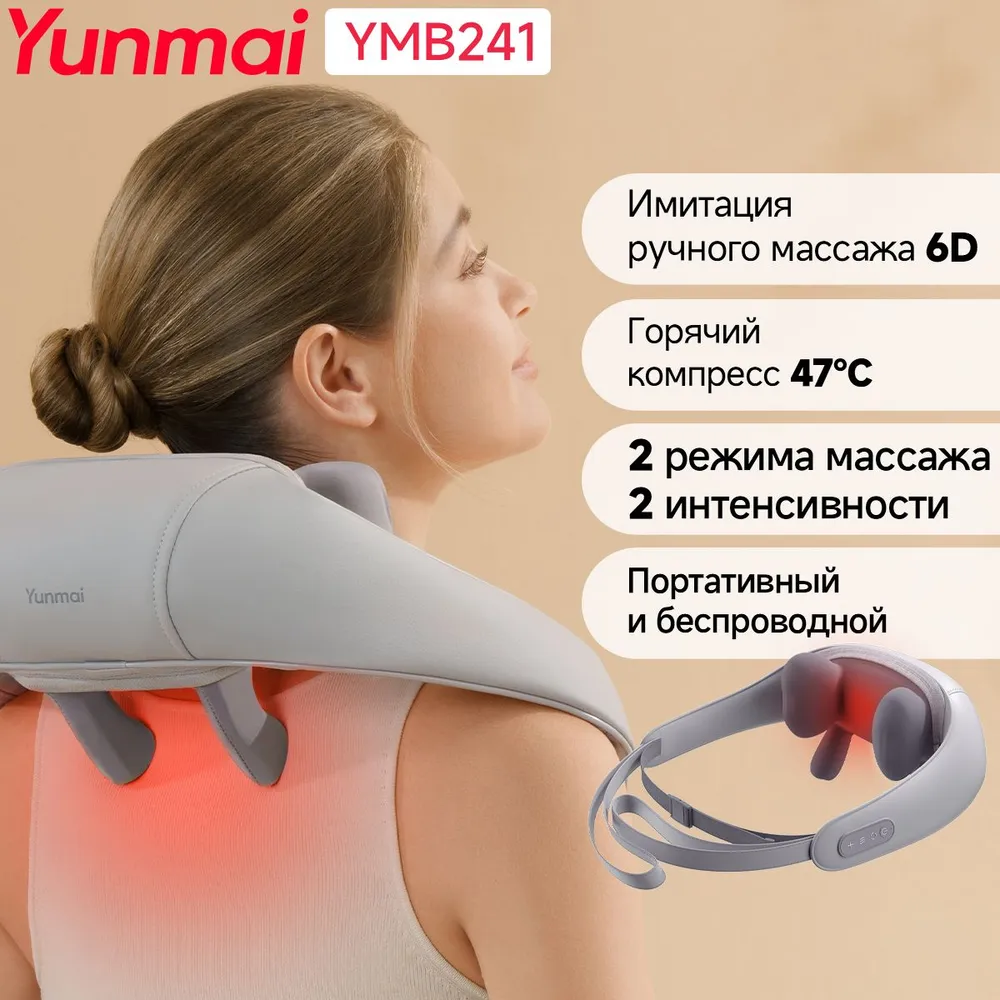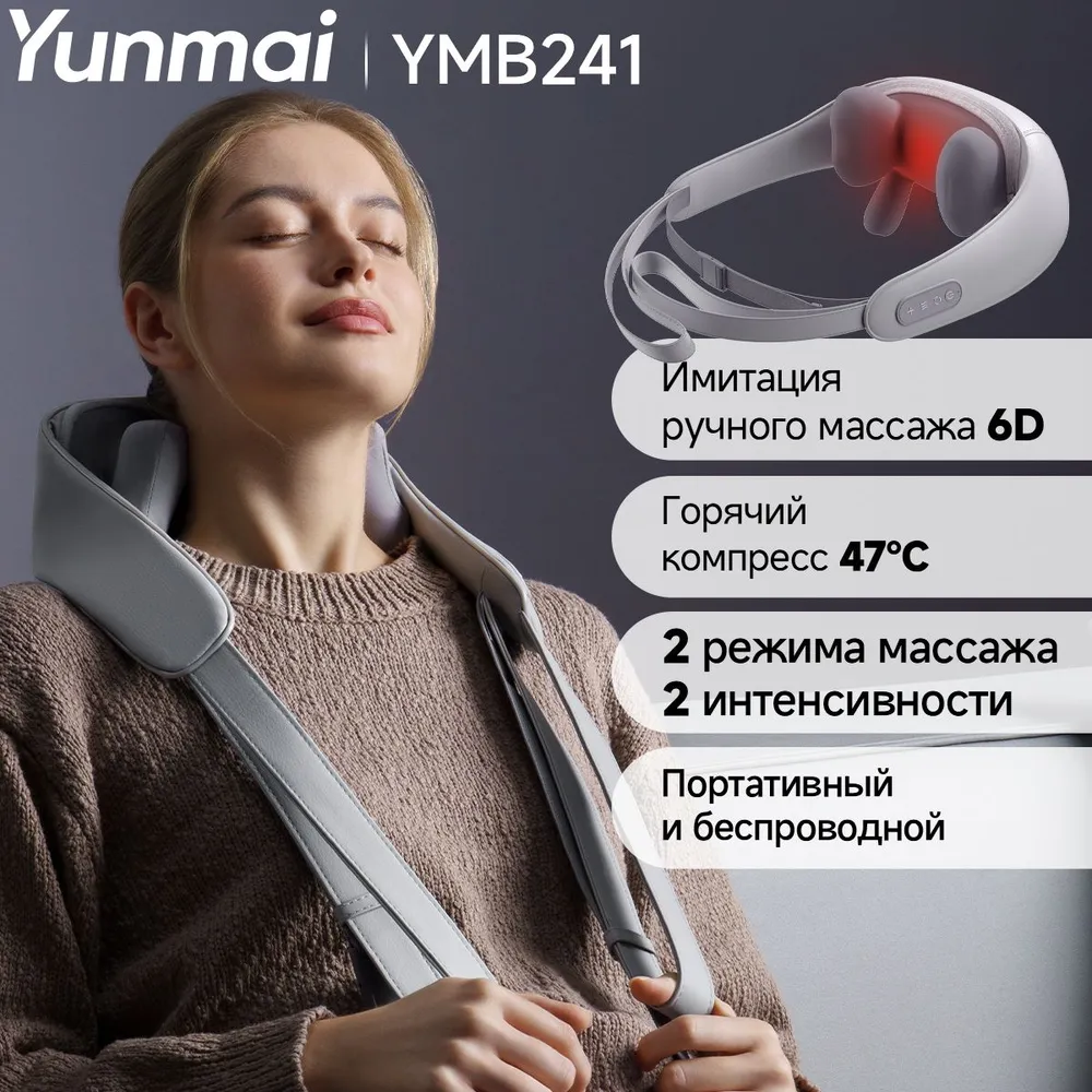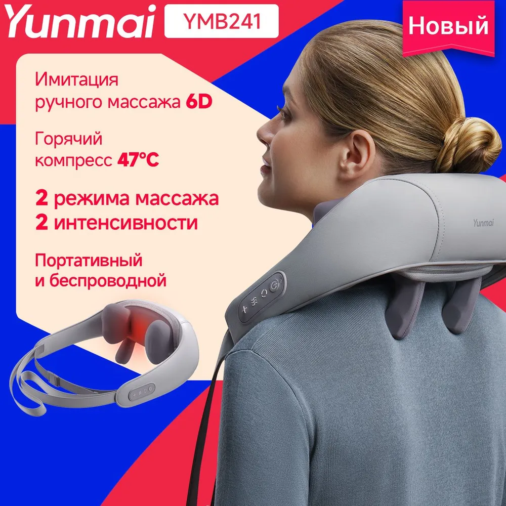 Массажер для шеи Yunmai.Устраняет дискомфорт в шее и спине благодаря инновационной технологии с применением разогрева.Массажер для шеи Yunmai оснащен передовыми 6D массажными насадками, которые имитируют руки профессионального массажиста, обеспечивая профессиональное, глубокое разминание, позволяющее глубоко проработать мышцы лодыжек, шеи и плеч, обеспечивая полное расслабление.