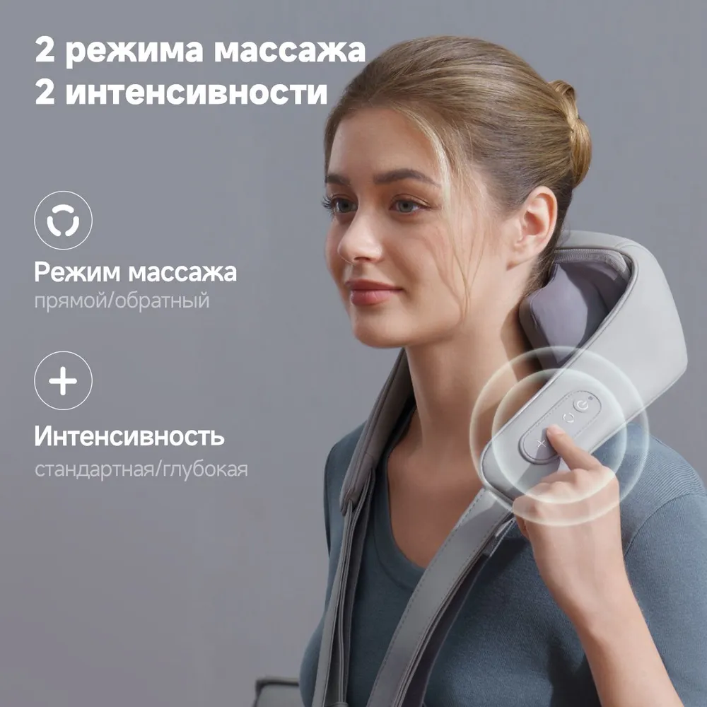 Вы сможете с легкостью носить этот массажер на шее. Он освобождает ваши руки, позволяя заниматься сразу несколькими делами во время сеанса массажа, что делает его идеальным спутником для людей с загруженным режимом дня. Настройте свой личный сеанс массажа с помощью 2- х режимов и 2-х интенсивностей мягкого либо усиленного воздействия, подходящего для разных возрастов и степени усталости. Постоянный нагрев создает успокаивающий тепловой эффект, качественно снимая боль в мышцах и улучшая кровообращение.