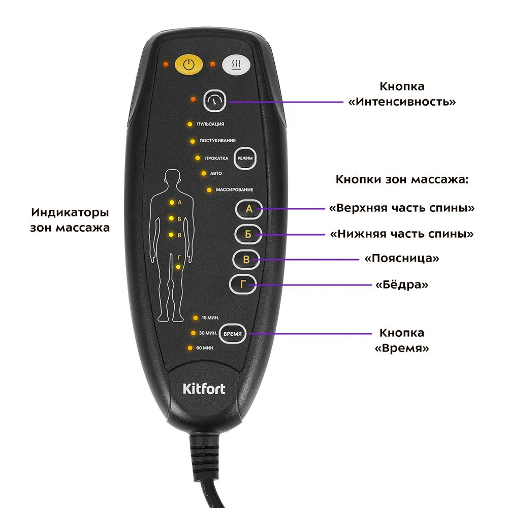 Пульт управления можно удобно убрать в карман для хранения, что делает сеанс массажа ещё лучше! Сеансы массажа положительно влияют на состояние костно-мышечной системы. Они повышают эластичность мышечных волокон.