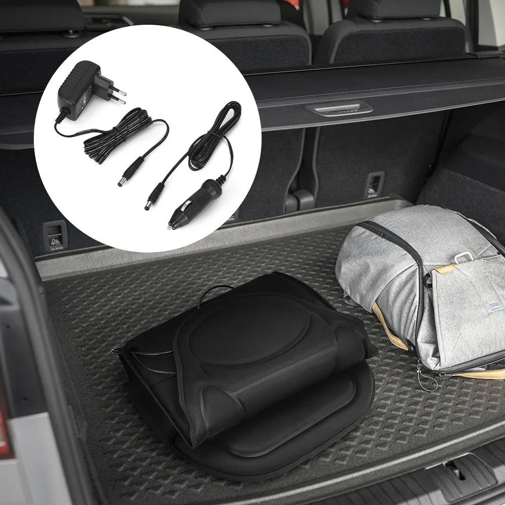 Помимо блока питания в комплекте к прибору идёт автомобильный адаптер. Используйте массажёр в автомобиле, подключив его к прикуривателю. Доя удобного хранения массажёр КТ-2991 складывается и фиксируется резинкой.