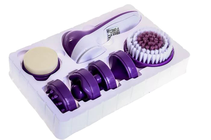 Количество насадок:6: насадка-губка для проведения пилинга, мягкая насадка-щетка, крупная пальчиковая насадка, мелкая пальчиковая насадка, насадка для точечного массажа, волнообразная массажная насадка