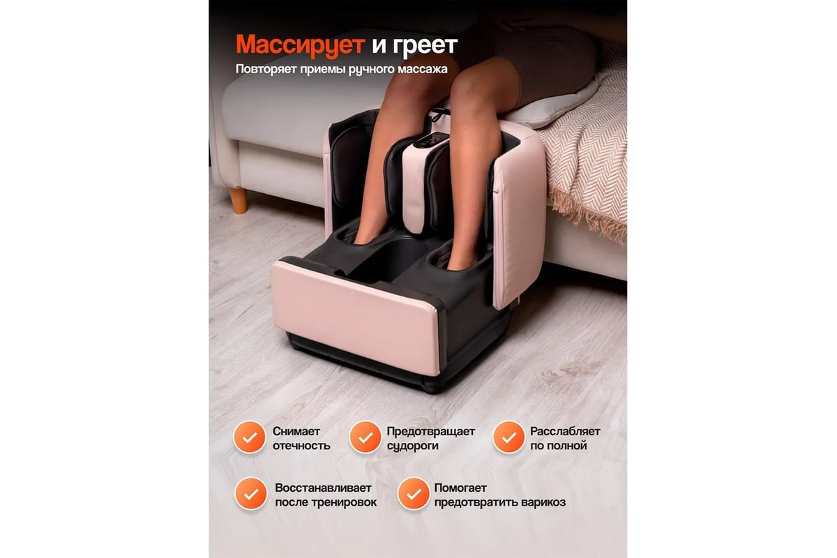 Массажер для ног GESS PUF бежевый GESS-101 biege для стоп и икр для комплексного воздействия на ноги. Способствует снятию напряжения в мышцах, прорабатывает все важные акупукнтурные точки. Массажер для ног в сложенном виде имеет форму пуфика, он не будет выделяться, его можно хранить на видном месте и использовать как отдельный предмет интерьера. Объединяет в себе три важных функции: массаж стоп, лимфодренаж и удивительно удобное место для отдыха. Массажер для ног с несколькими видами массажного воздействия: роликовый, акупунктурный, воздушно-компрессионный и вибромассаж. Можно отдельно выбрать зоны массажа и настроить интенсивность воздействия. Массаж осуществляется воздушными подушками, акупунктурными аппликаторами и массажными роликами. У массажера PUF 5 автопрограмм, позволяющих выбрать именно тот вариант, который подходит в данный момент. Электрический массажер позволяет эффективно проработать стопы, глубоко промассировать икры, снять неприятные ощущения в ногах после длительного стояния или сидения. По желанию можно включить прогрев стоп или сидения (в сложенном виде). Это позволит сидеть на теплом пуфике, когда не используются массажные функции. Панель управления находится на корпусе прибора, что обеспечивает легкий доступ и настройку параметров массажа. Комплексное воздействие массажера способствует общему улучшению организма. Регулярные сеансы массажа способствуют улучшению сна, настроения и повышению общего тонуса. Подходит до 45 размера стоп.
