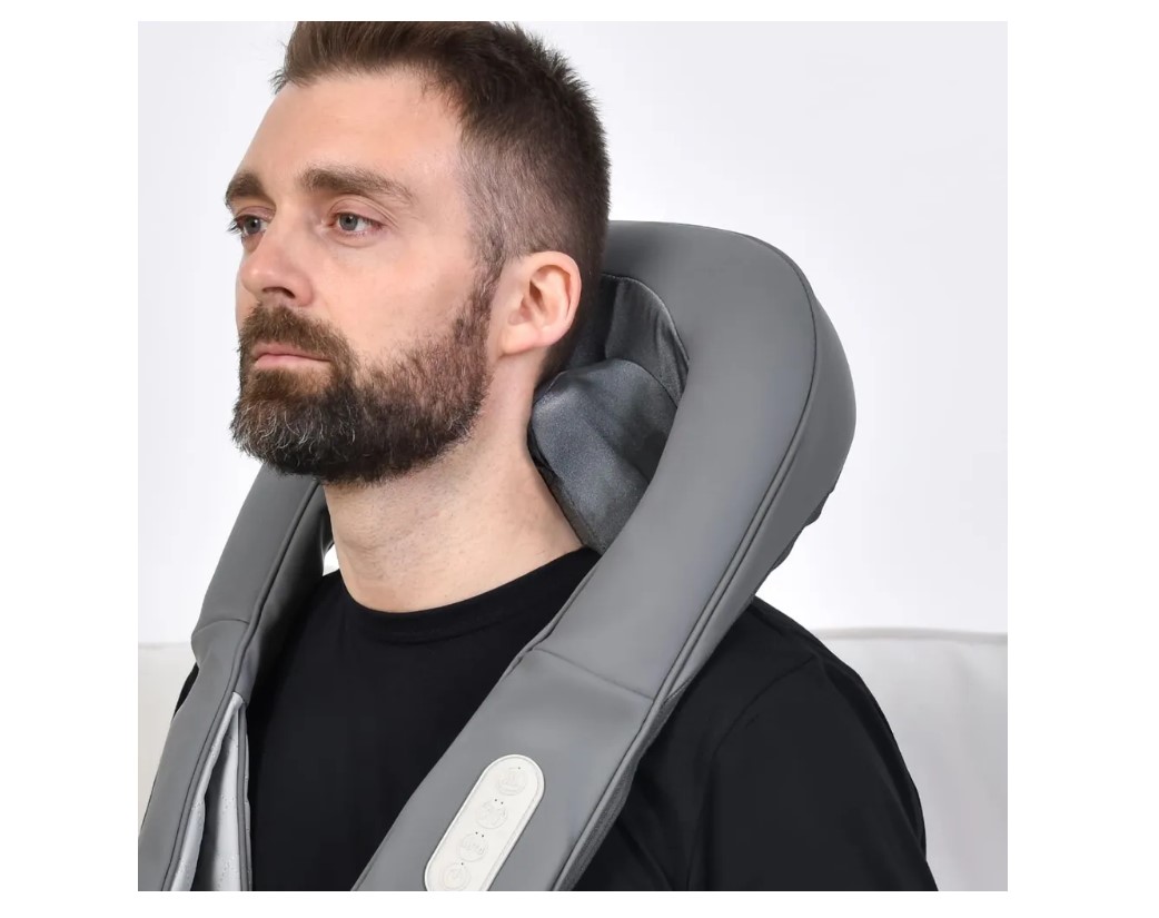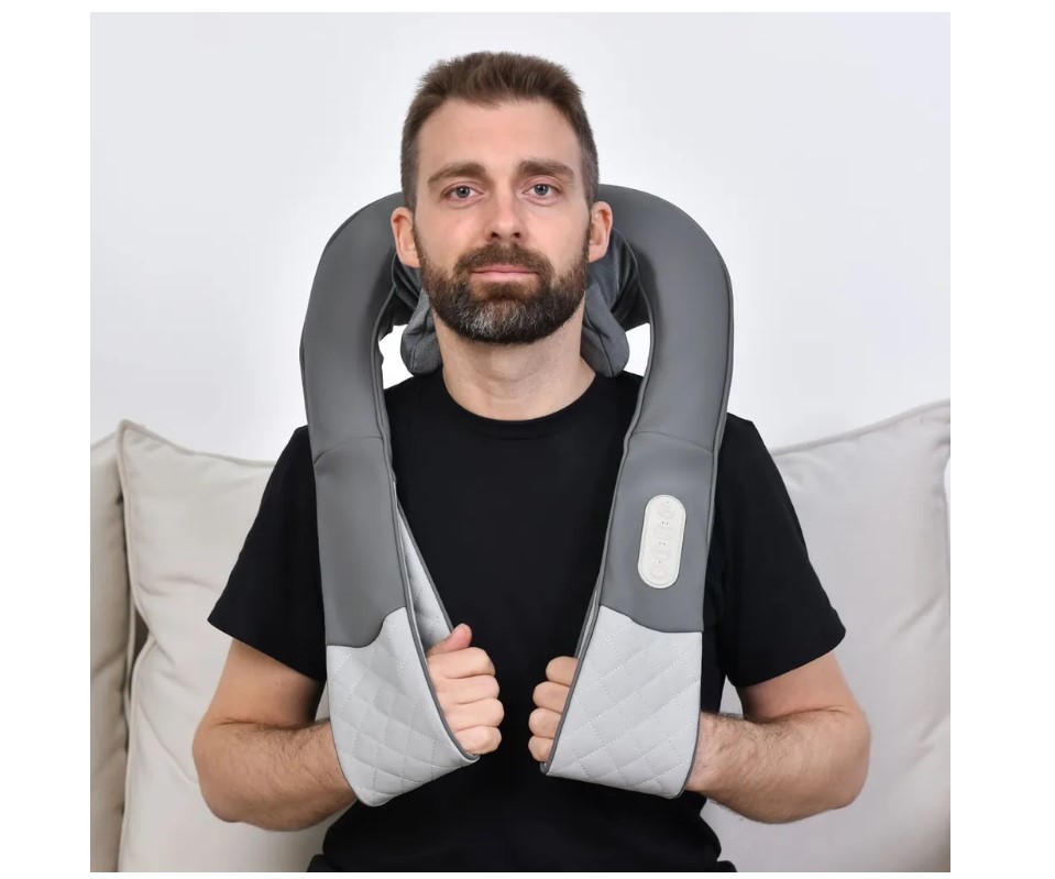Массажер для шеи и плеч Legenda. Сетевой кабель. Автомобильный адаптер. Инструкция. Гарантийный талон. Картонная коробка с принтом.
