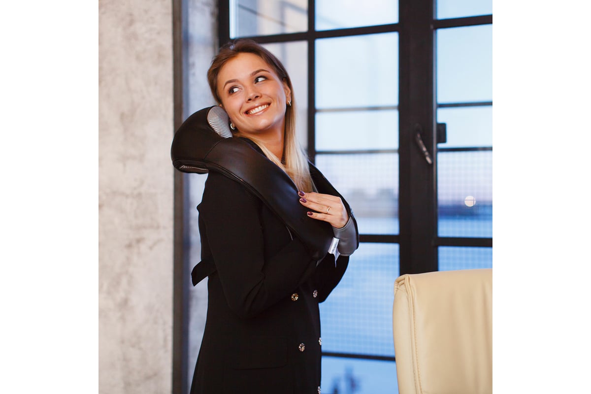 Удобный и многофункциональный массажер с объёмными роликами 3D, которые имитируют руки. Такой массажер отлично прорабатывает шейно-плечевую зону, зону поясницы, бедра и может использоваться даже при массаже стоп. У массажера 3 скорости, есть выбор направления вращения роликов; инфракрасный прогрев (эту функцию при желании можно отключить); удлиненные ручки (с помощью ручек силу массажа легко регулировать). Ремень крепления позволяет установить массажер uBlack на выбранном участке тела. Например, для массажа поясничного отдела. Утяжелитель в основании корпуса обеспечивает плотное прилегание роликов к телу. Автоматическое отключение через 15 минут работы. В комплекте есть сетевой кабель, адаптер для прикуривателя (массажер можно использовать как дома, так и в машине). С uBlack вы получите качественный массаж, который отлично расслабит ваши мышцы. При этом силу массажного воздействия вы сможете самостоятельно регулировать массажными ручками.