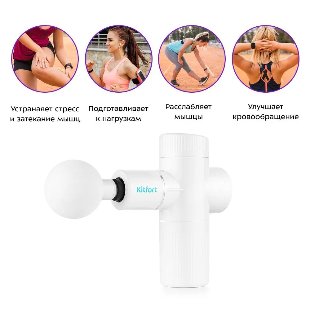 Перкуссионный массажёр избавит от мышечной усталости, боли, спазмов, ограниченной подвижности. Под действием ударной вибрации активизируется кровообращение и насыщение тканей кислородом, улучшается лимфодренаж и выводятся токсические продукты метаболизма.