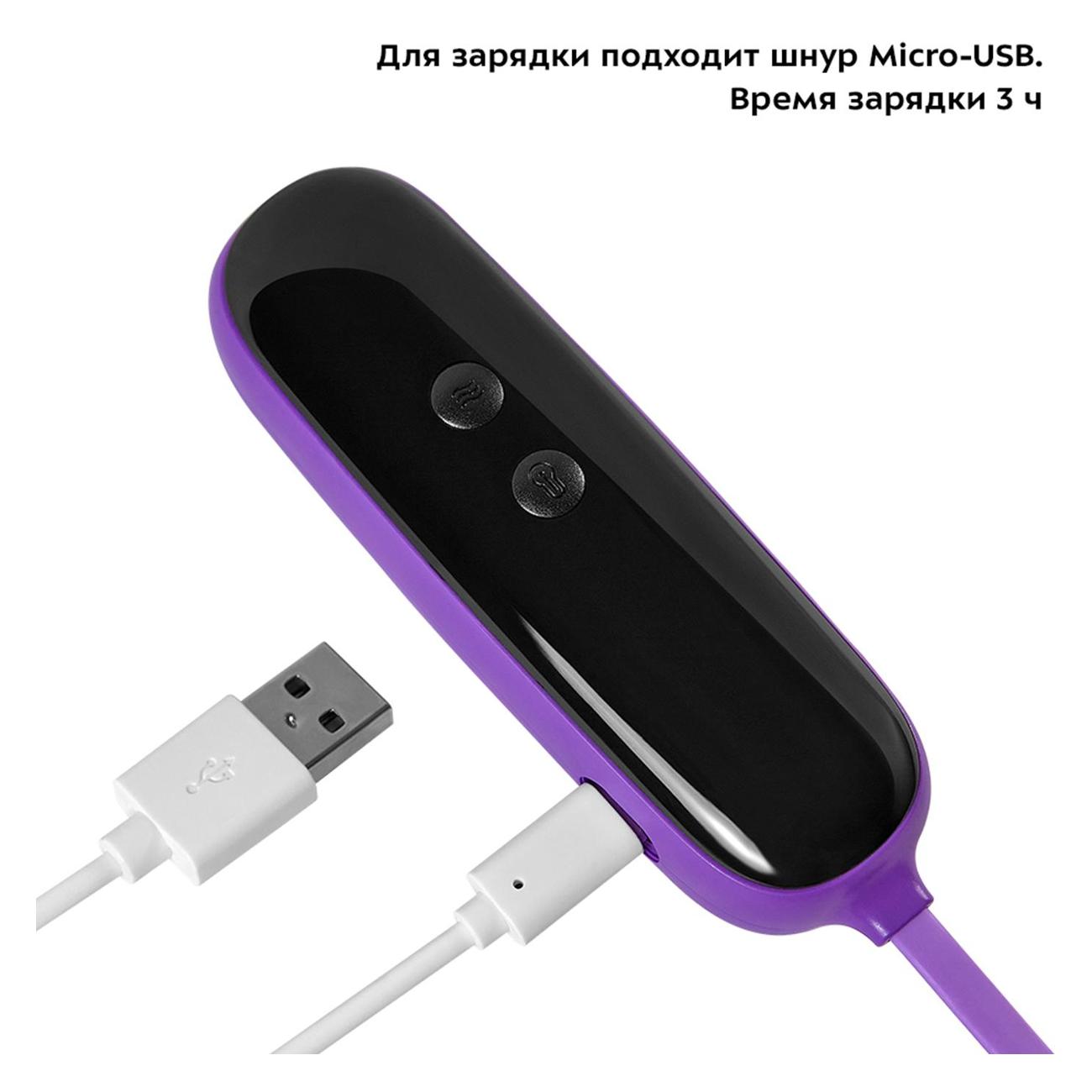 Устройство автоматически отключается через 30 минут. Световая индикация сигнализирует о выбранной программе. В качестве источников питания используются встроенный аккумулятор и сеть переменного тока. Длина кабеля — 50 см. Потребляемая мощность — 5 Вт. Корпус изготовлен из полиэстера фиолетового цвета. Размеры — 1,6х10х20 см. Вес — 0,125 кг.