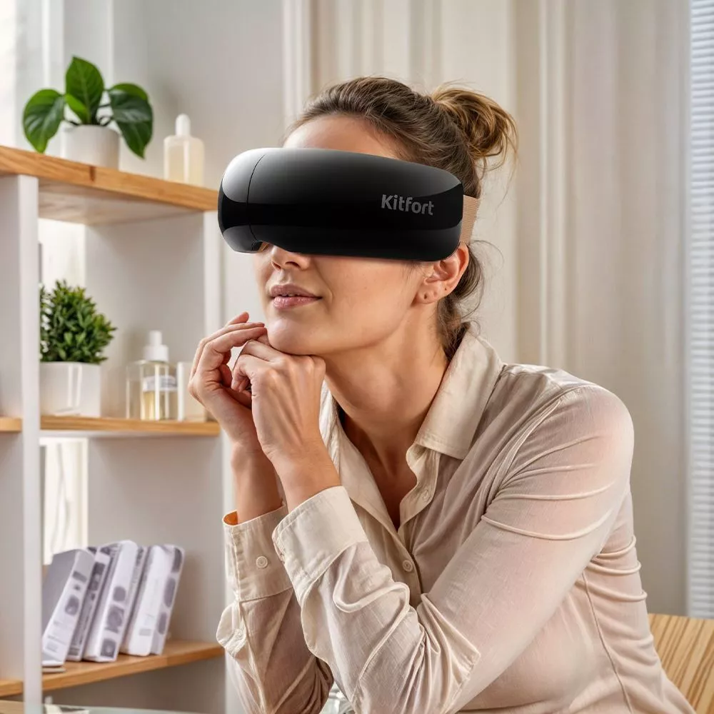 Массажёр для глаз КТ-2949 поможет снять усталость с глаз после напряженного дня. Прибор сочетает в себе воздушно-компрессионный и вибрационный массаж, а также нагрев. В основе воздушно-компрессионного массажа лежит прессотерапия.