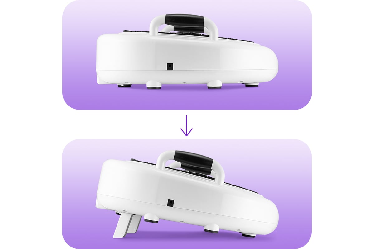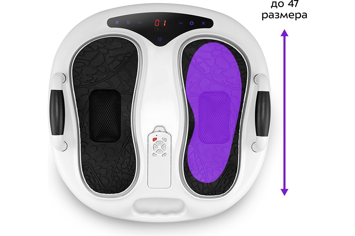 Прорезиненные ножки массажера не дают ему скользить по полу. Прибор оснащен ручками для переноски прибора. На массажере есть место для хранения пульта ДУ.