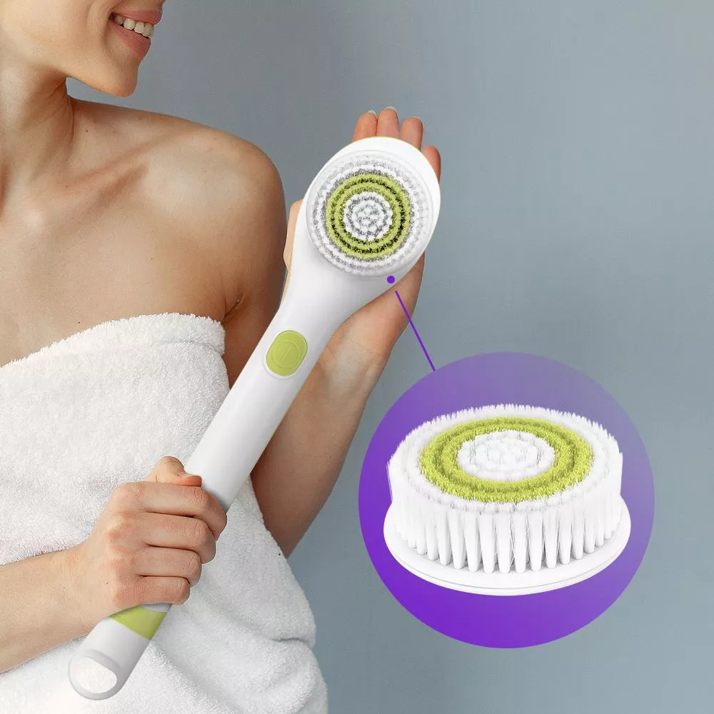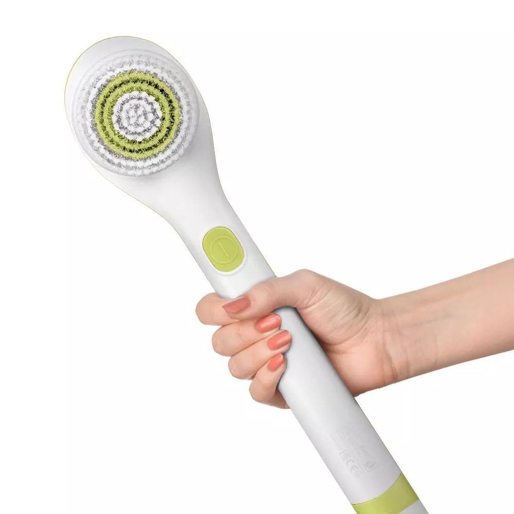 Щётка для тела аккуратно и тщательно очищает кожу. Вибрация при работе прибора стимулирует кровообращение, снимает усталость, оставляя кожу гладкой, упругой и сияющей.