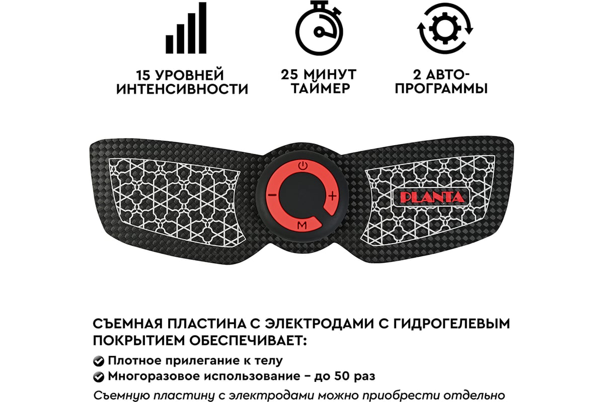 Массажер-миостимулятор для тела Planta EMS-100 – это современный портативный электростимулятор и вибромассажер для тела с технологией электронной стимуляции мышц (EMS), разработанный для тренировки мышц рук, бедер, поясницы, шеи у мужчин и женщин.