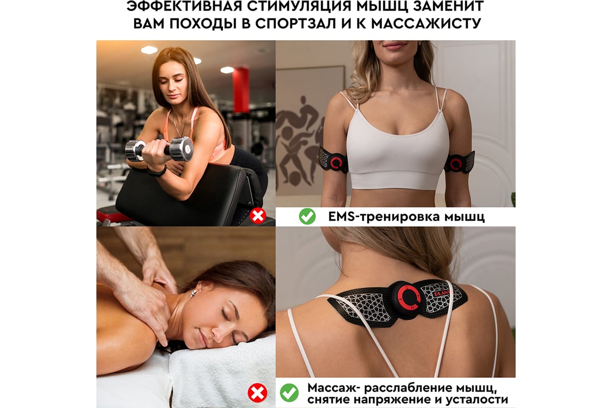 Миостимулятор имеет 2 автоматические программы, позволяющие использовать тренажер не только, как миостимулятор для мышц рук, бедер, поясницы, шеи, но также и как массажер для тела.