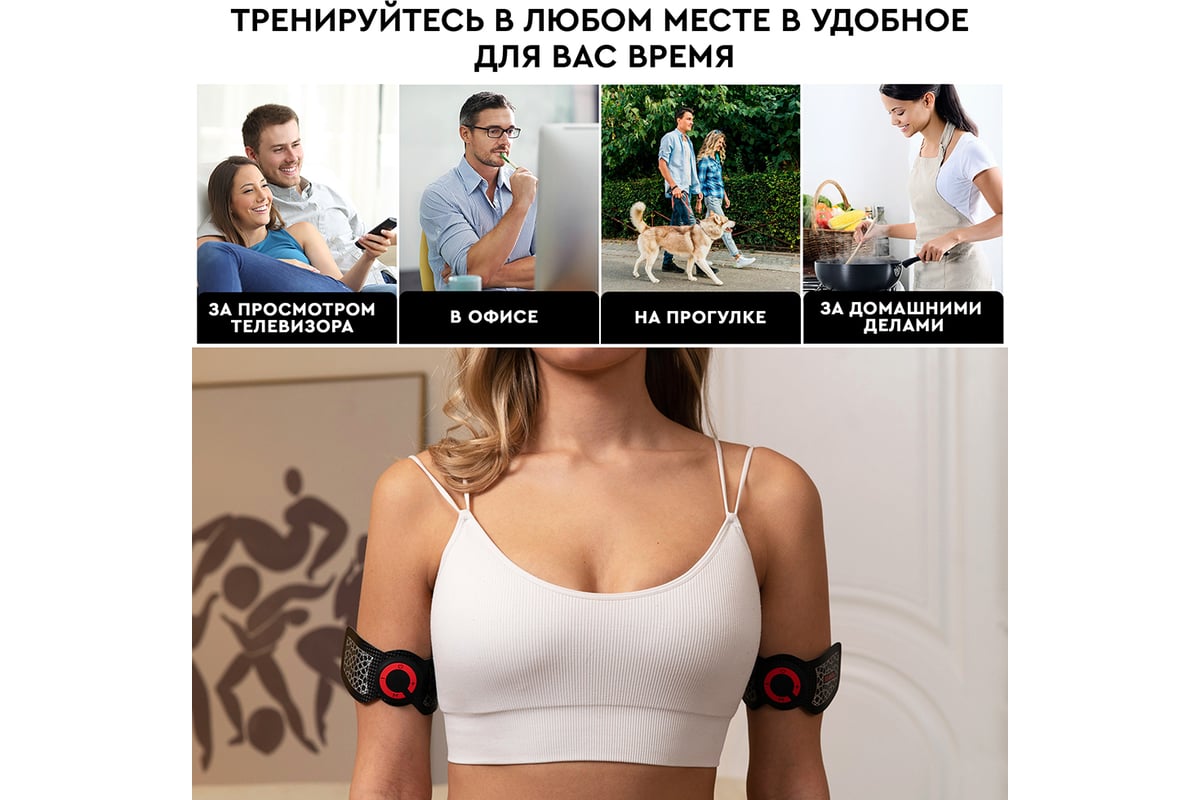 Массажер для тела имеет преимущество беспроводного использования в домашних условиях, на работе, в дороге. Достаточно удалить защитный стикер с пластины с электродами и прикрепить пластину к мышцам тела, включить устройство и наслаждаться эффективной тренировкой или комфортным массажем в любое время в удобном для Вас месте.