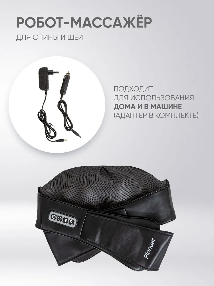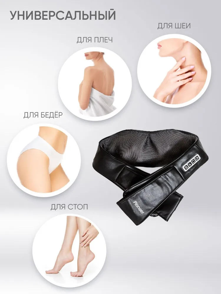 Массажер для спины и шеи Pioneer предназначен для массажа шеи и плеч, но может быть использован и для других частей тела благодаря своей изогнутой форме. Он может использоваться как дома, так и в автомобиле, что делает его удобным для тех, кто часто находится в пути.