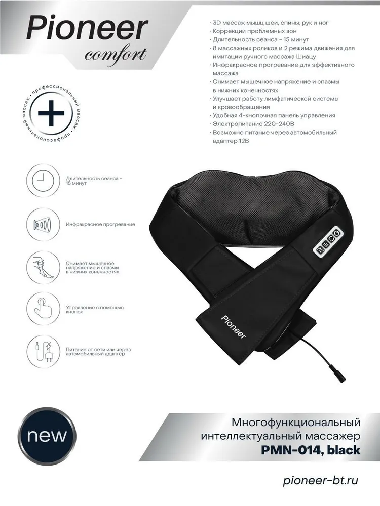 Робот-массажер Pioneer PMN-014 black - это уникальное устройство, которое поможет вам улучшить свое здоровье и самочувствие. Он обладает целым рядом преимуществ перед ручным массажем: