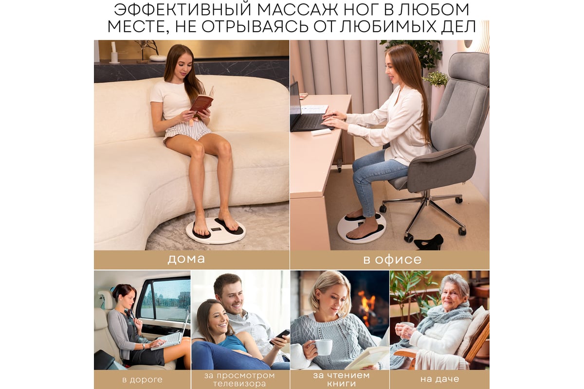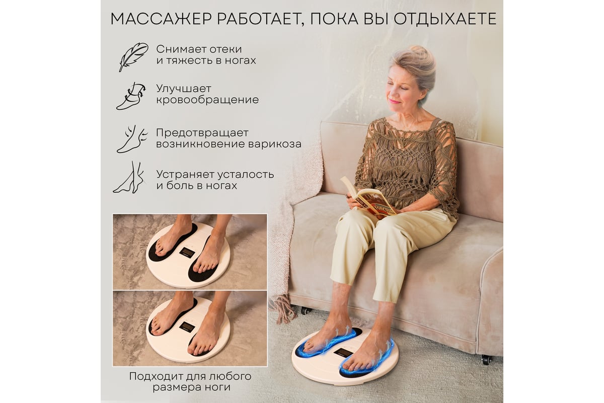 Благодаря уникальной конструкции, массажер подходит для любого размера ноги. При этом массажер для стоп имеет компактный размер и не займет много места. Массажер для тела массажер для ног действует сразу на все тело